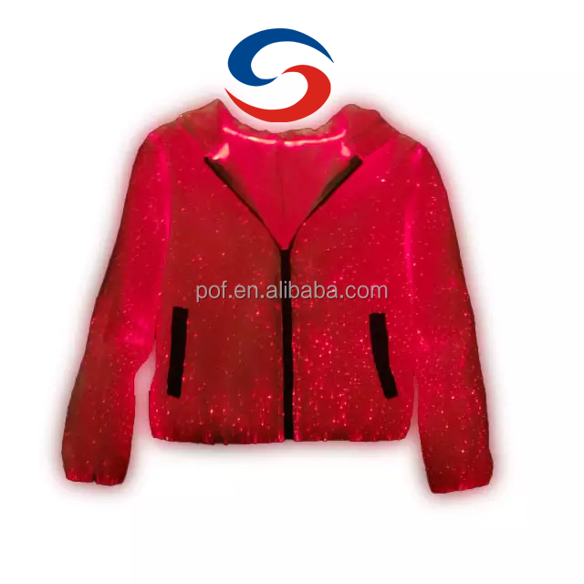 Luminous Zip Up Women Men Jacket Hoodie Costume Coat Fiber Optic Hoodie With Led Light