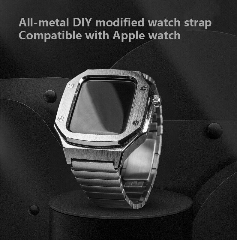 45Mm 44Mm Stainless Steel Metal Case + Strap For Apple Watch 8 7 Leather Band For I watch Series 6 se 5 4 Modification kit