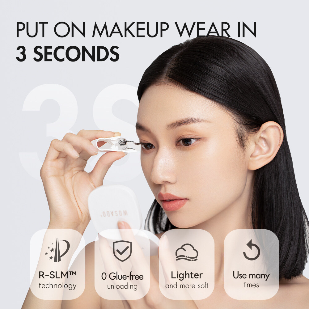 Thank you for choosing WOSADO!A new brand that advocates "Technology and Efficiency" in beauty industryWe always think that the "fast pace" brought by technology is everywhereBut in the daily makeup routine, the tedious steps still take up a lot of our timeHolding the concept of efficiency, we integrate technology into makeup beautyExclusive “R-SLM" technologyThe perfect balance between sophistication and timeMake makeup less complicated and more efficientFeatures:Well definedDescriptions:Suitable for light makeup.HOW TO USE:1.First lift your eyelash clip and comb it neatly.2.Confirm the best position to wear eyelash (about 3-5mm away from the inner eye angle).3.Understanding the blue and white spots on the smooth surface of eyelash magnetic stripe is a position tip.Tips:1. Find out the location of the blue and white spots, and dot the eyelashes at the same location, by which the blue spot is the upper piece and the white spot is the lower piece of the same eye.2.The end of the blue and white dot is the end of the eye.4.Put the upper and lower eyelashes on the auxiliary clip correctly, and put the soft magneto-optical sliding surface with blue spot downward on the “UP↑”side of the auxiliary clip, and put the soft magneto-optical sliding surface with white spot downward on the “DOWN↓side” of the auxiliary clip.5.The correct position is to put the top and bottom eyelash tip inward and upward towards the auxiliary clip.6.The auxiliary clip is close to the root of eyelid eyelash, and the position is fixed.7.Lift the auxiliary clip, gently press the eyelid, keep the clip in normal straight line and arc, and lift up 45°angle, slowly up fit.8.Complete the wear.Product InformationColor: BlackWarp: C curl /50°upwardWidth: 21.5mmFalsies length: inner corner 7.5mm, center 8.5-9.5mm, out conner 10.5mmAbout this item:1.Enlarging your eyes just takes 3 seconds. Easier to learn than adhesive eyelash, easy to wear after skilled. An excellent makeup tool for both beginners and professionals. Guaranteed to save your makeup time2.No need to do makeup removal. 1 second to take off, pinch the end of the eyelashes, a gentle pull can be taken them off3.Glue-free, no harm to the your original eyelashes, multi-pole magnetizing technology, Irritation-free, and no need to worry about red eyes and various eye diseases.4.Eyelashes are made of DuPont material. The premium synthetic fibers that result in luscious eyelashes. It is as light and comfortable as real eyelashes, soft and natural. This will not irritate your eyes or damage your natural eyelashes.5.Affordable and reuseable. As long as you keep them properly, the product can be used for about 90-180 days. If your frequency is about 1-2 times a day, you just spend less than 1RM a day then guaranteed a pair of perfect eyes.6.Permanent magnets, if used infrequently and well protected, can be used for more than 10 years.7. Eyelashes are exquisitely handmade craft.