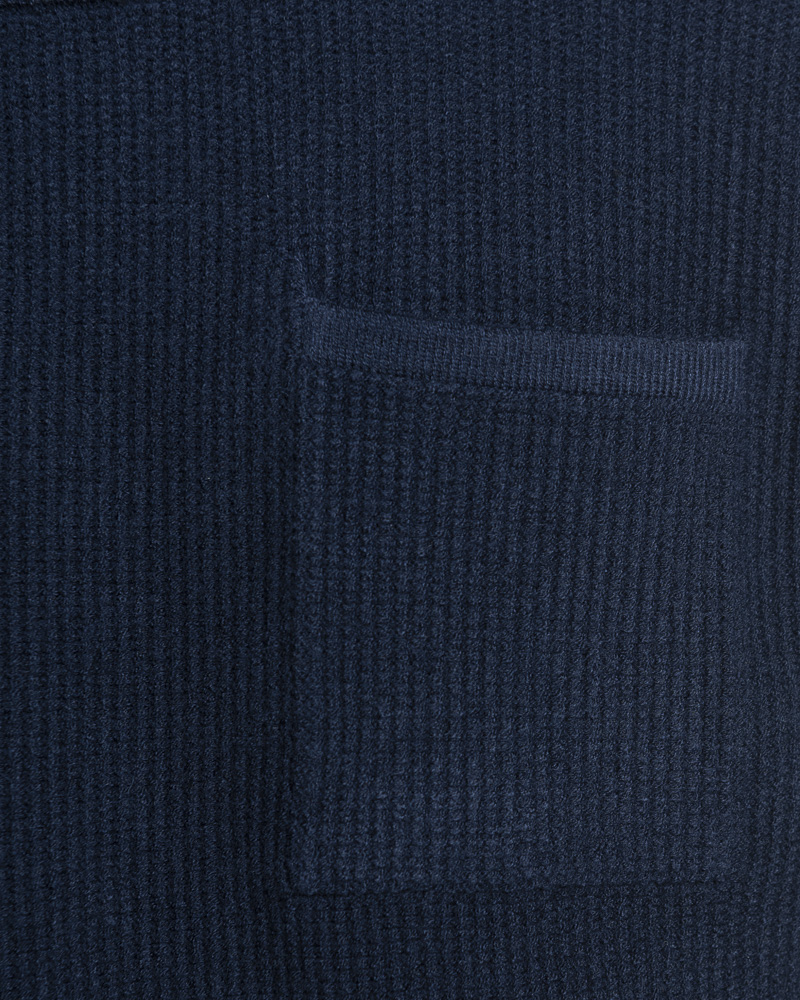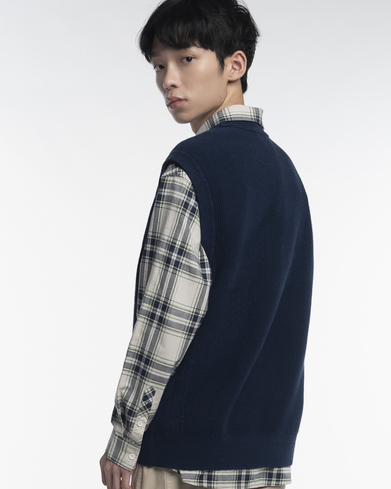 Yishion Men Knitted Round Neck Vest with Chest Pocket and Ribbed Hem (Dark Blue)