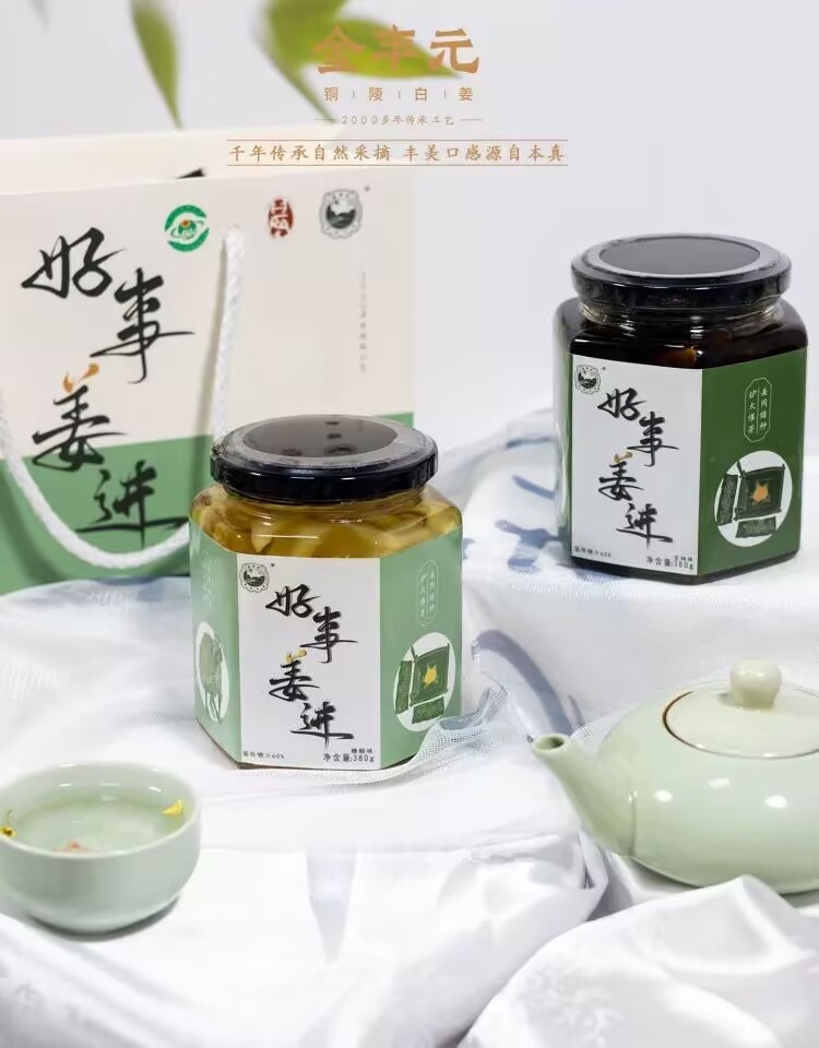 Anhui specialty Jinfengyuan Tongling white ginger sweet and sour soy sauce soaked ginger tasting gift bag 380g*2 bottles