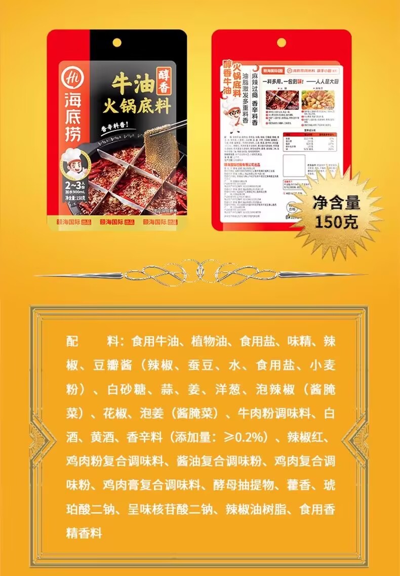 Haidilao mellow fragrant butter chafing dish bottom material 150g
