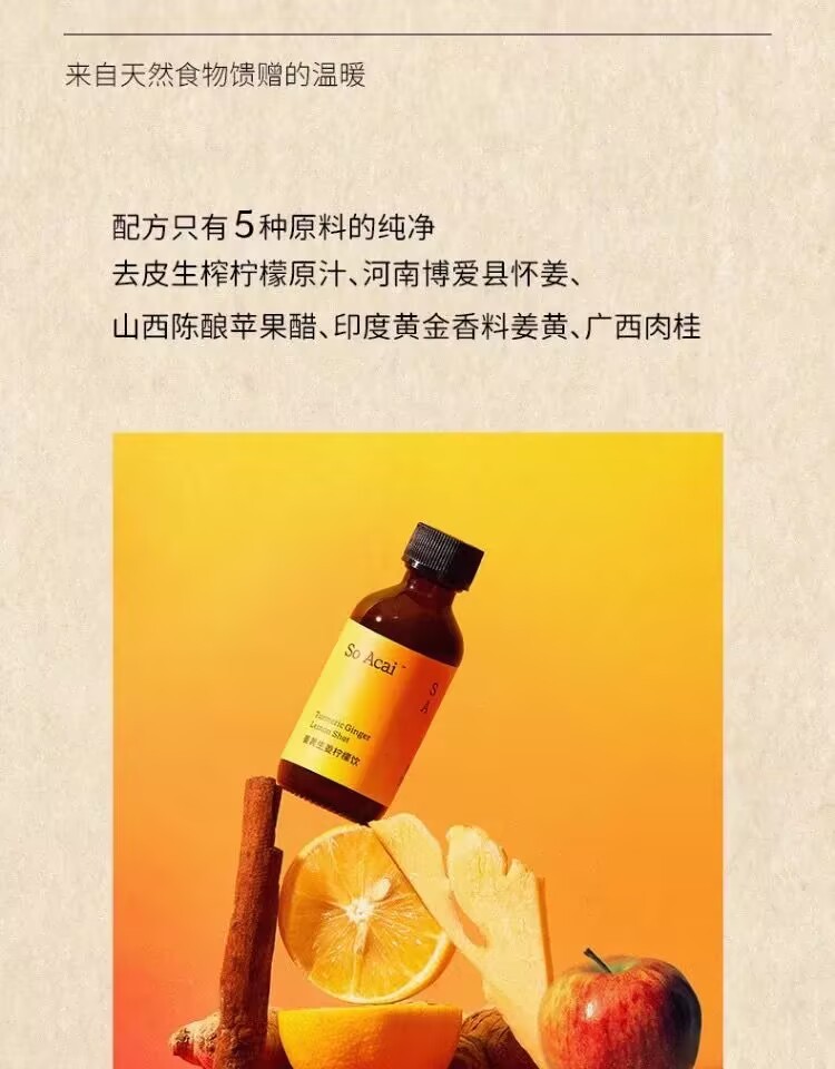 Soacai Turmeric Ginger Lemon Drink Cinnamon Apple Vinegar Ginger Lemon Juice Concentrated Ginger Juice Small Yellow Bottle Turmeric Drink